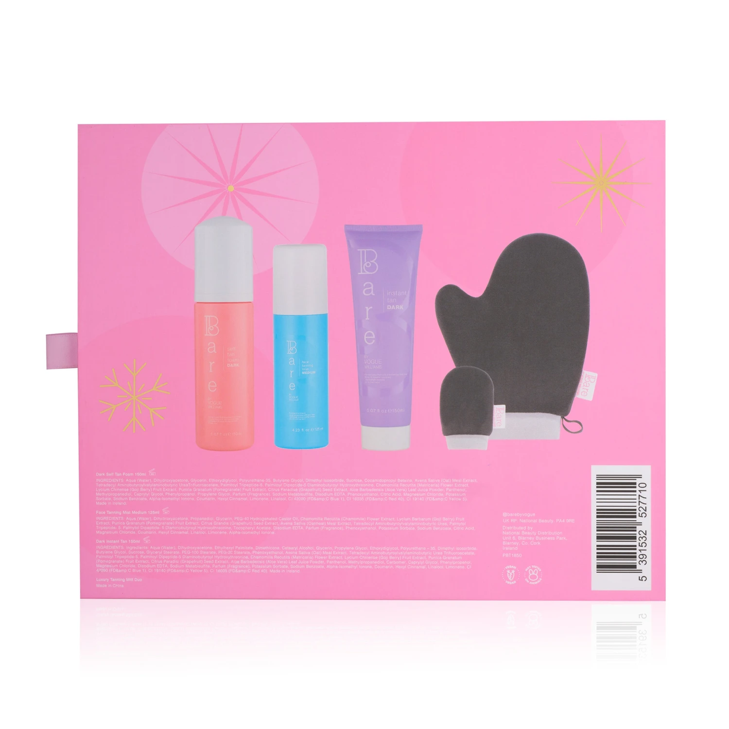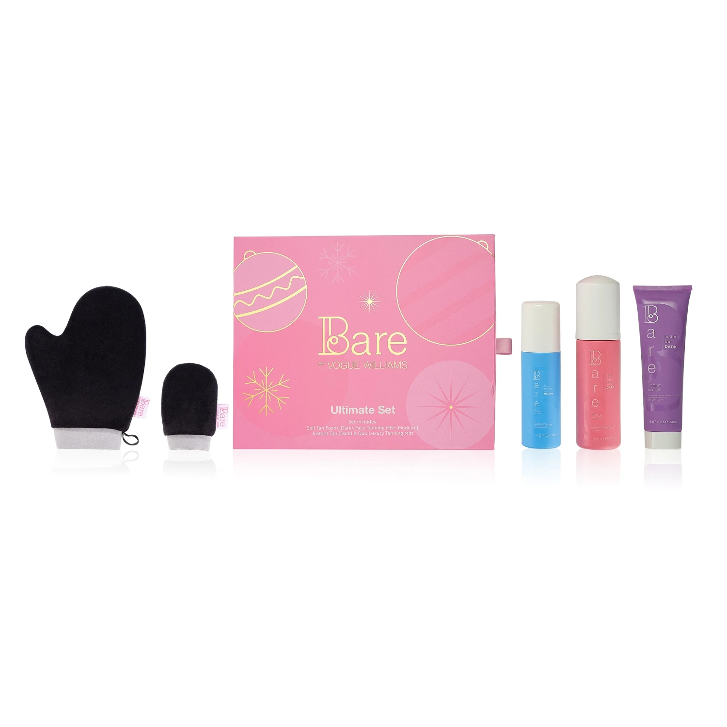 The Ultimate Kit is packed with everything you need for a full body routine, from the Best Selling Dark foam, to the coveted Self Tan Eraser. This set also includes the widely adored face tanning mist in medium, and our skin perfecting instant tan in shade dark. The instant tan is easy to apply and not only evens out skin tone for a silky smooth tan but also hides any imperfections and enhances skin tone. Achieve a rainproof, natural looking tan quickly and easily, with just one application of the instant tan. When you are ready to refresh your tan and have the perfect clear canvas, Bare by Vogue Self-Tan Eraser aims to give you the ultimate experience by allowing you to quickly and gently remove your tan without scrubbing. Its rich hydrating formula locks in moisture leaving your skin feeling nourished, smoother, and super soft. Infused with botanicals Goji Berry, Oatmeal, Chamomile, Pomegranate, and Grapefruit, our effective self-tan eraser helps to promote natural skin health and preps and primes the skin for your next Bare by Vogue tanning application.
