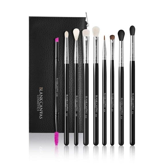 Blank Canvas 9 Piece Eye Perfection Collection Brush Gift Set contains 9 brushes to apply, blend, smudge, line and detail to makeup perfection! This brush set also comes with a Faux Leather Case, perfect for beauty lovers on the go who need easy storage.