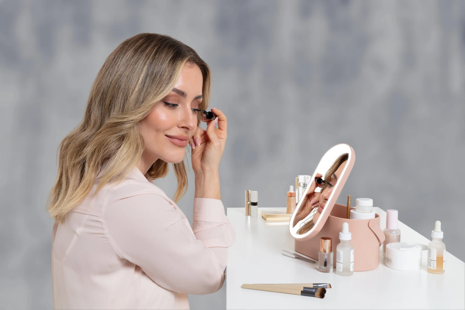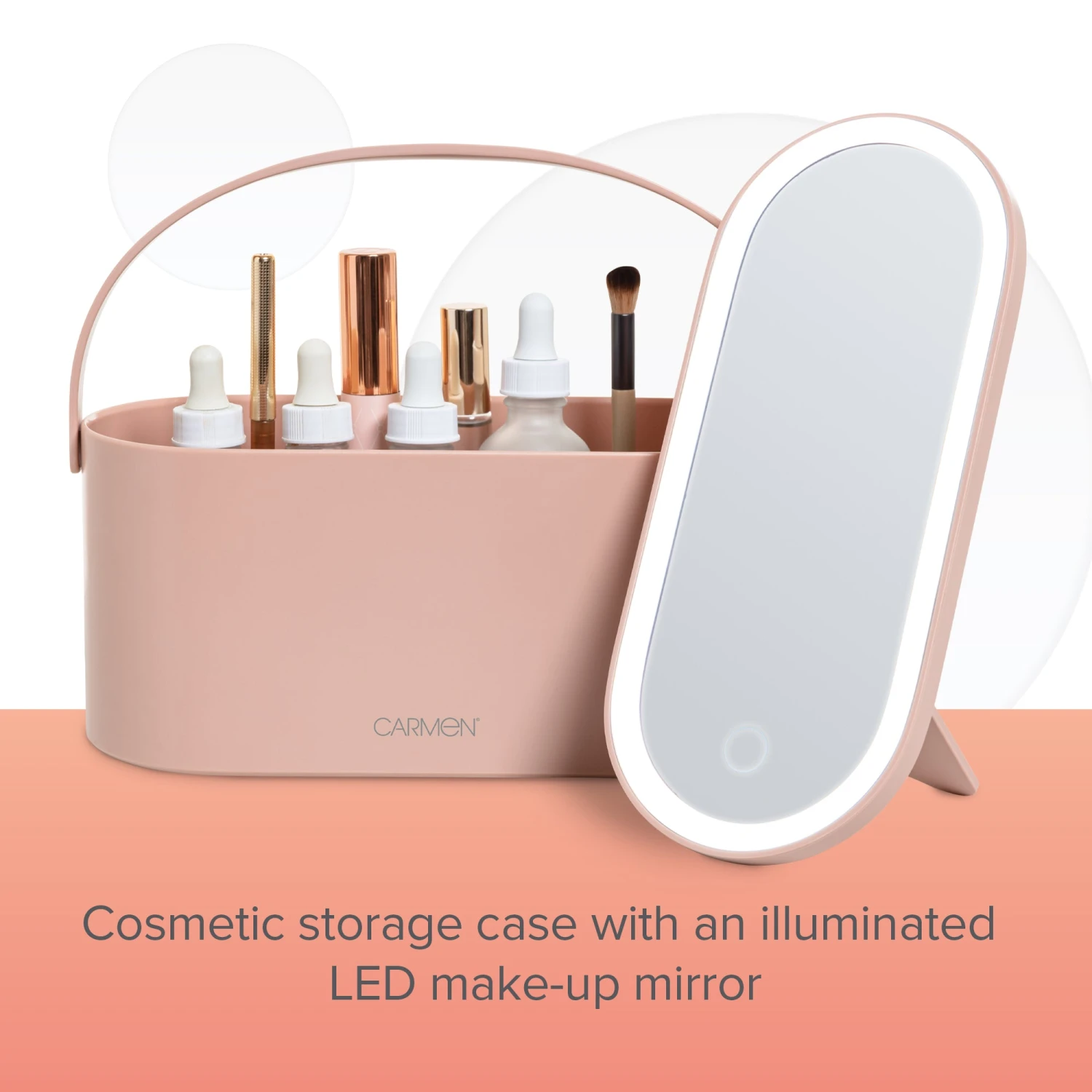 Carmen Cosmetic Storage With Led Mirror Pink