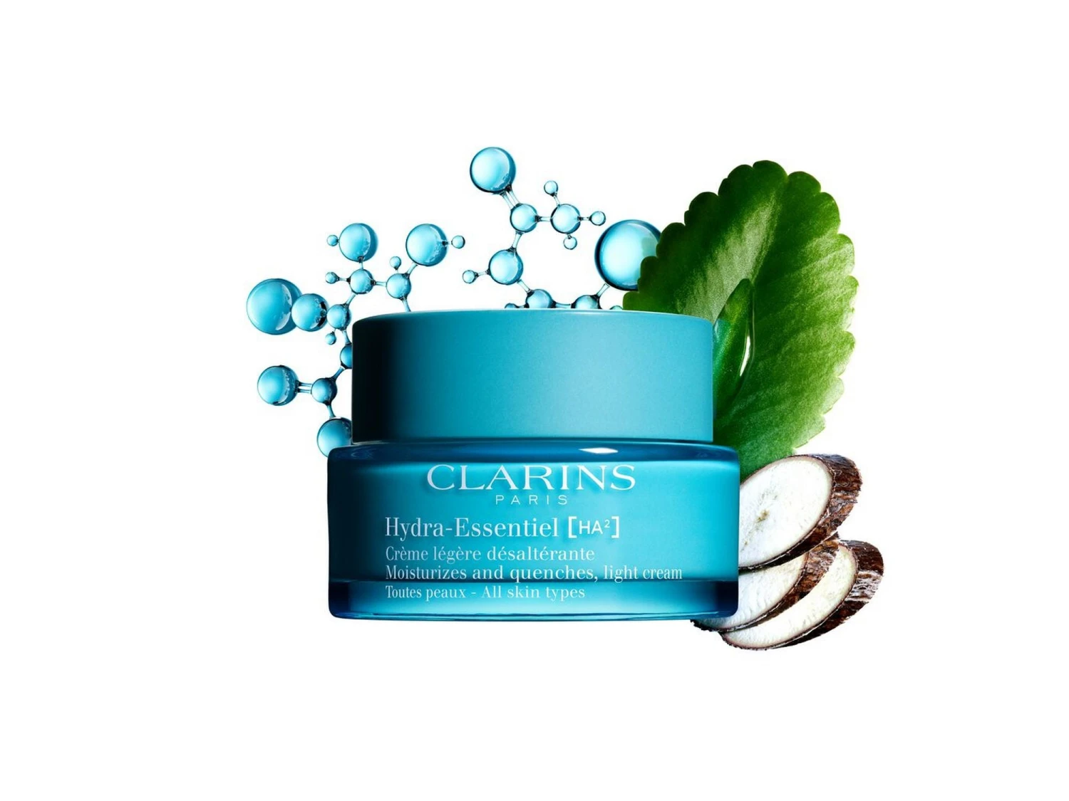 Clarins Hydra-Essntiel Light Cream is enriched with hyaluronic acid, organic leaf of life extract and organic cassava root powder, intensely hydrates and plumps the skin, while controlling shine. At the heart of its formula, the Hyaluronic Power Complex developed by Clarins Laboratories helps boost the skin’s natural self-hydration mechanisms and preserve its moisture reserves. Its fresh, light texture melts instantly into the skin, leaving it plump, supple, comfortable and matte.