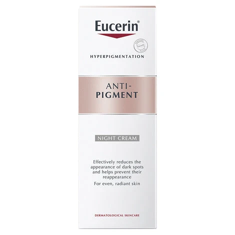 Eucerin Hyperpigmentation Anti-Pigment Night Cream with patented Thiamidol is clinically proven to reduce the production of melanin, helping prevent the re-appearance of dark spots with regular usage. The formula with Dexpanthenol helps support skin’s cell renewal overnight. First visible results in 2 weeks and a continuous improvement over time with regular usage. For even, radiant skin. Clinical and dermatological studies prove very good skin tolerability and efficacy.