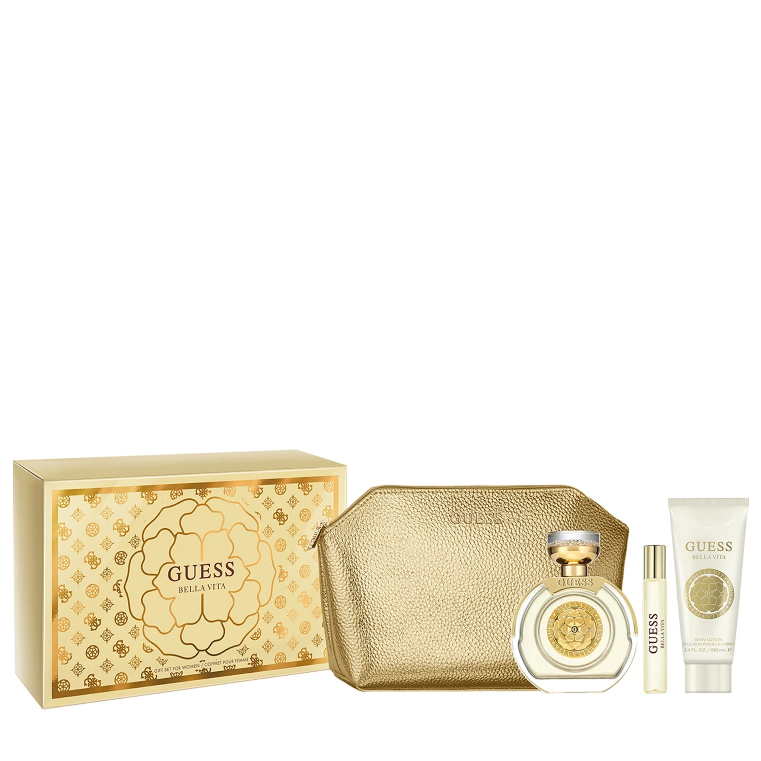 GUESS Bella Vita , an elegant and luxurious fragrance for the glamourous GUESS Girl. This new fragrance brings GUESS back to its roots – Southern California & the Mediterranean. This fruity floral amber fragrance instills confidence in the wearer. The floral heart is feminine and elegant and the textural and creamy warm back notes of tonka bean and sweet praline create a comfort feeling.
