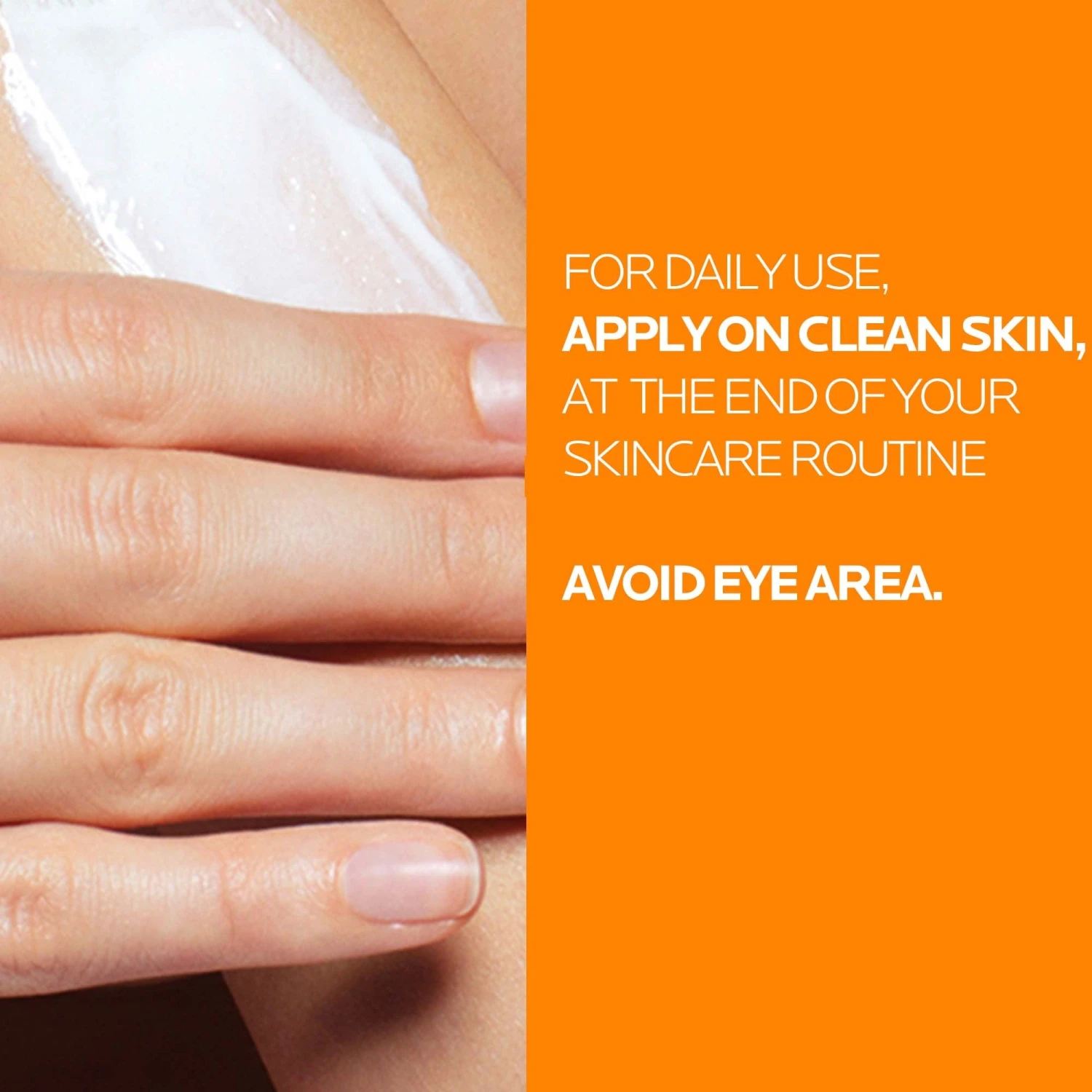 For daily use, apply on clean skin, at the end of your skincare routine. Avoid eye area. In case of contact with eyes, rinse them immediately and thoroughly.