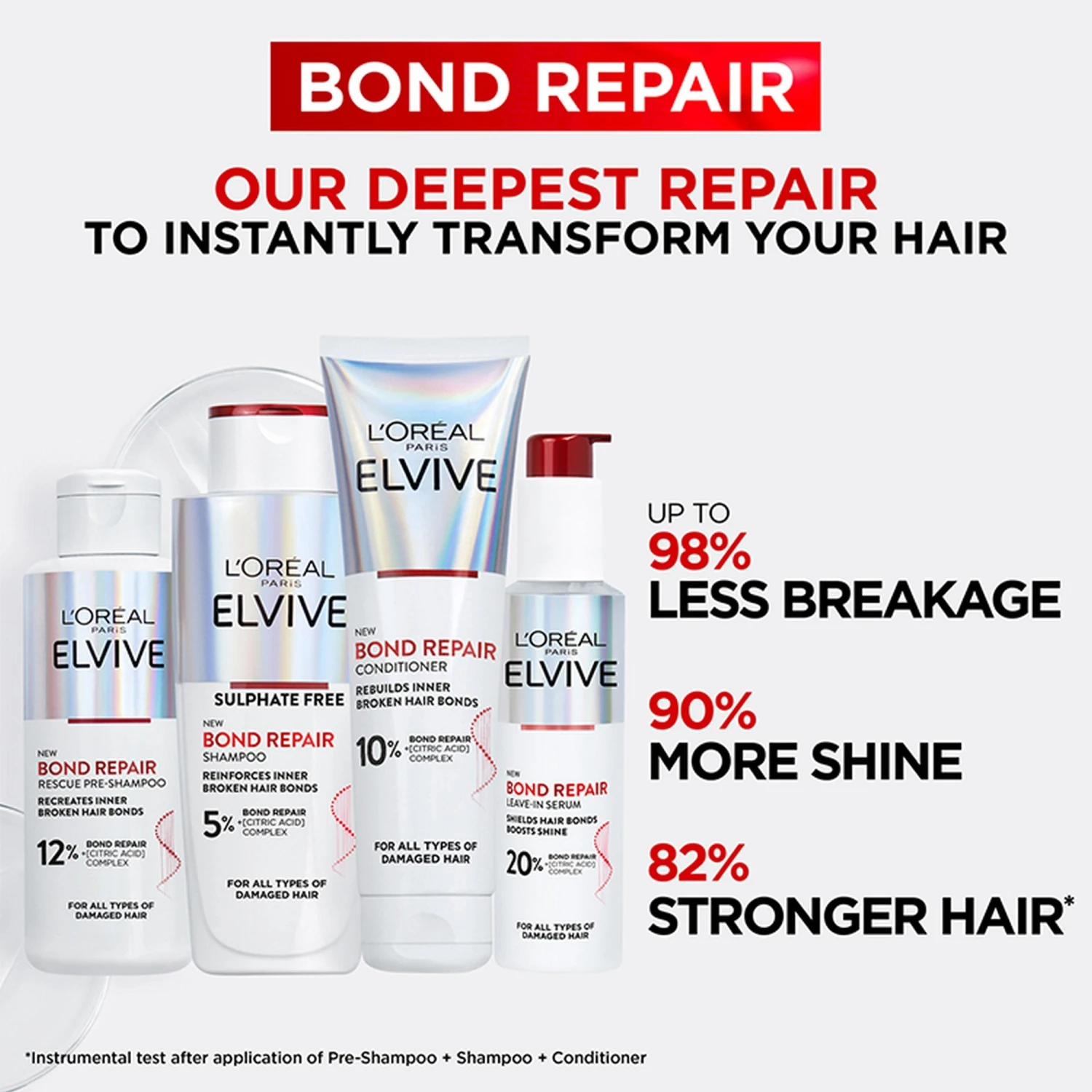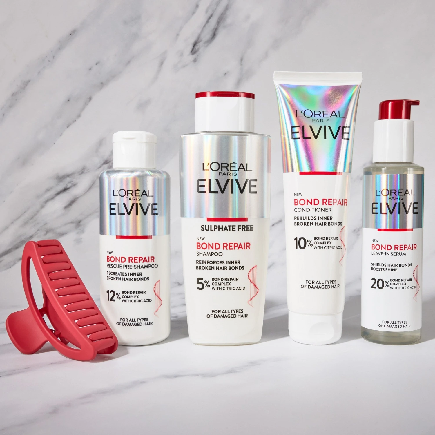 Tackle your damaged hair dramas and instantly transform your hair with the Elvive Bond Repair Full Routine Bundle. For the first time, our formulas powered by Citric Acid Complex, target damaged hair & rebuild broken bonds from the inside out.