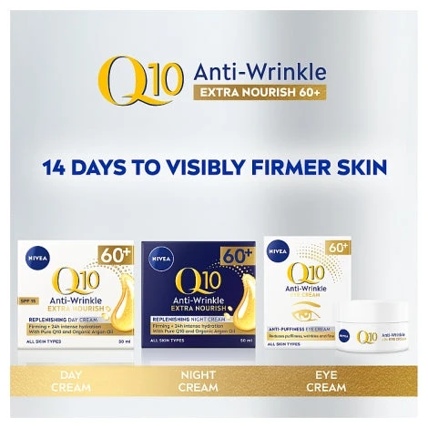 - Enhance your daily face routine with Q10 Anti-Wrinkle 60+ Eye Cream & Night Cream.