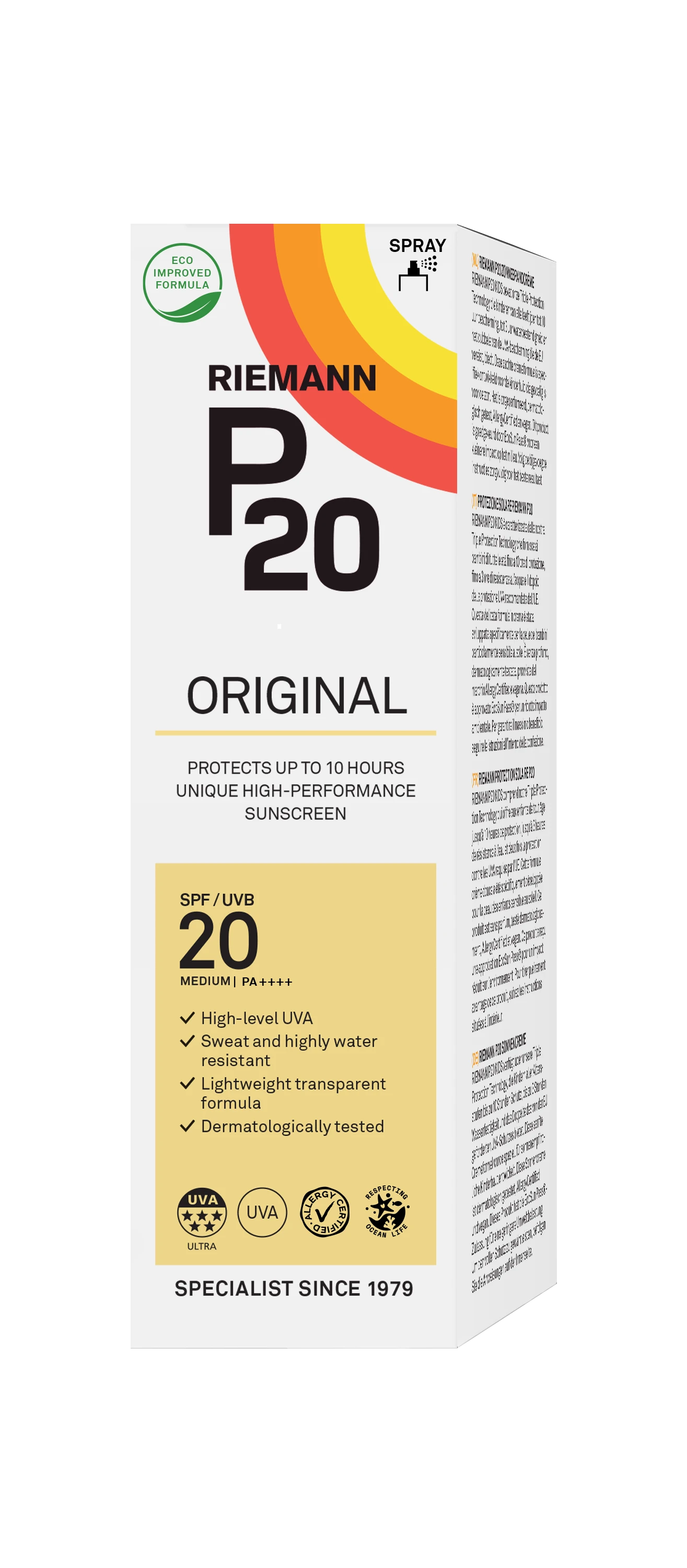 Riemann P20 Original Lotion (85ml) features our Triple Protection Technology that provides up to 10 hours of protection, high water resistance and exceeds EU’s required level of UVA protection. A lightweight, transparent gel that is easy to apply, fast-drying and sweat resistant. Riemann P20 ORIGINAL is dermatologically tested, fragrance free and vegan. A sunscreen for those who require high-performance protection UVB/SPF 20 / Medium protection – UVA-PF – above 20