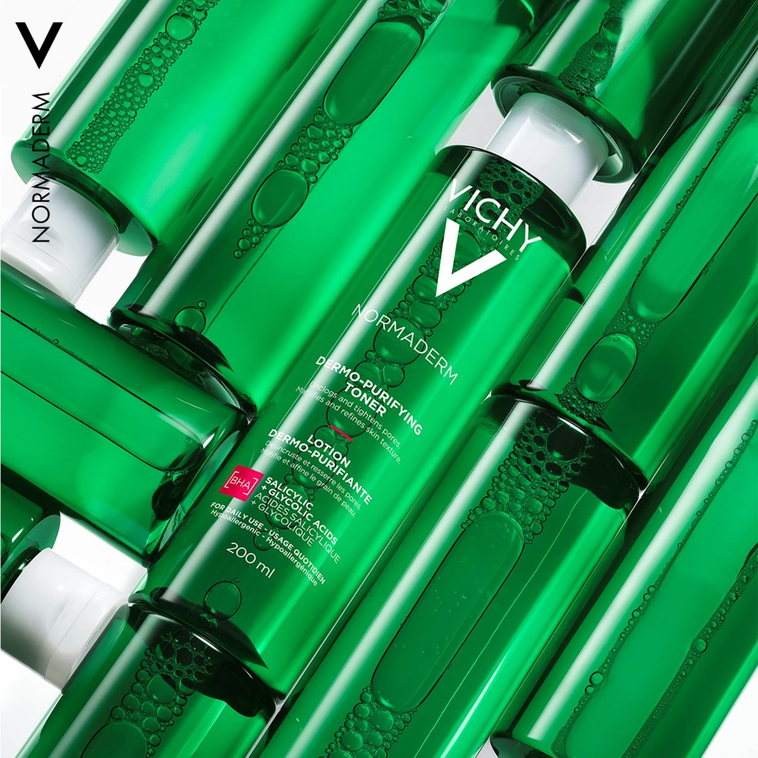 Vichy’s Normaderm Purifying Astringent Lotion Toner is a mattifying 3-in-1 solution immediately acts on dilated and clogged pores, shine and recurring concerns.